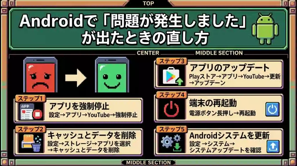 スマホで「YouTubeに問題が発生しました」今すぐ直す方法|iPhone・Android別の対処法と原因の切り分け方【2026最新版】